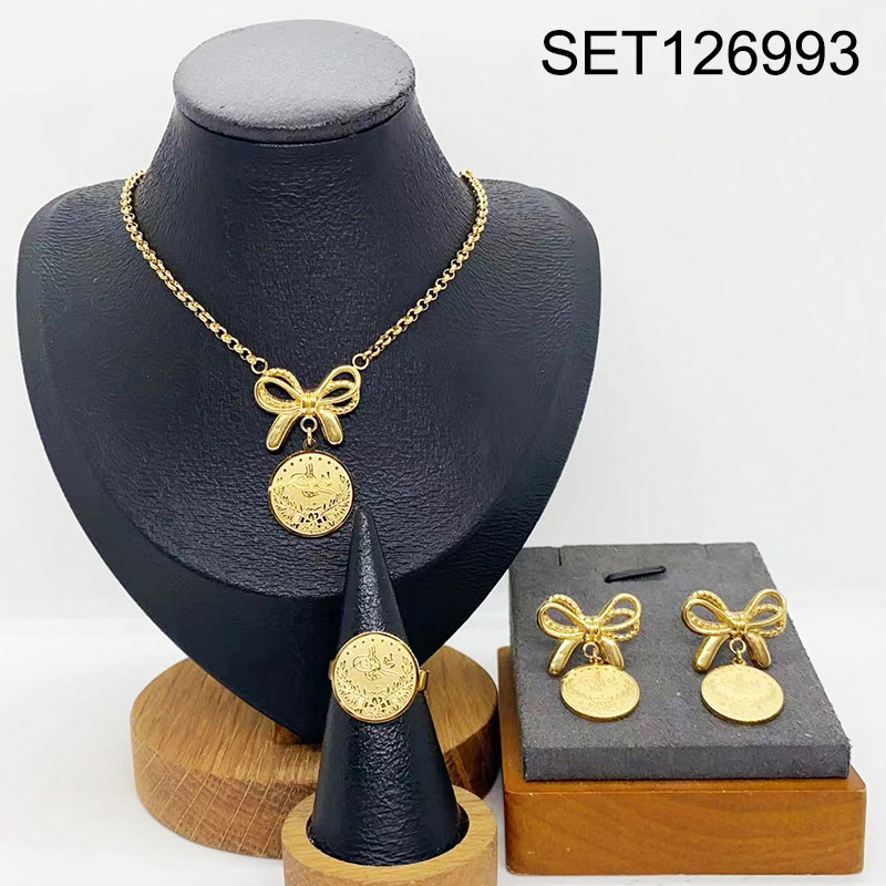 Level B Stainless Steel New Trendy Women Jewelry Bowknot Golden 3pcs SET