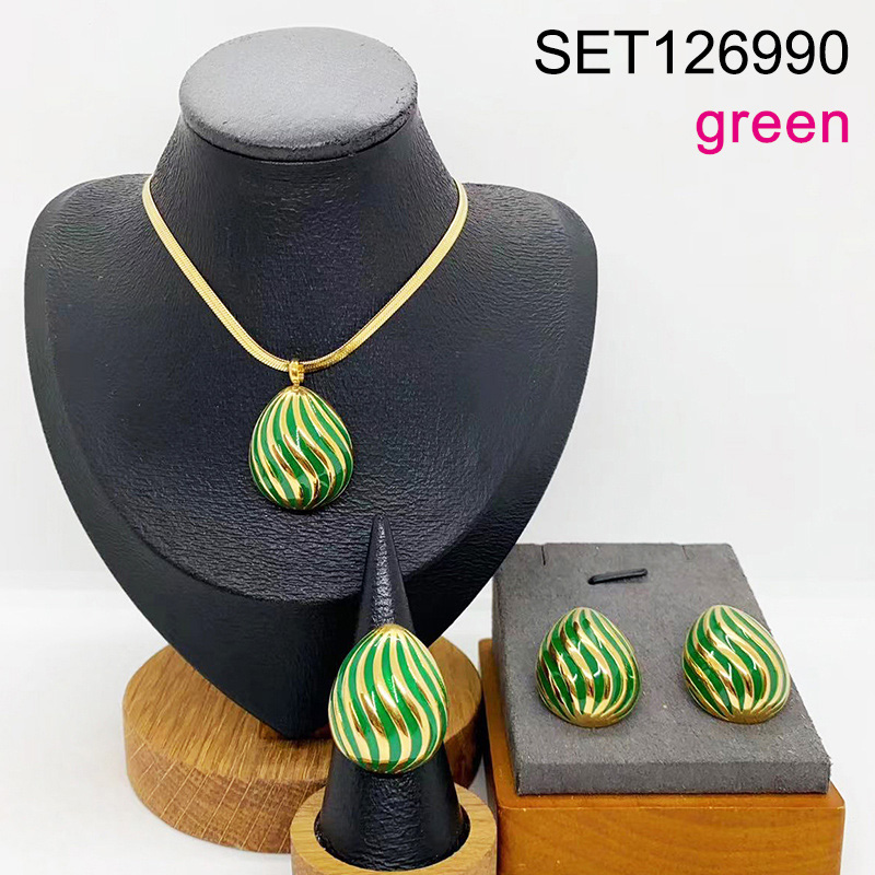 Level B Stainless Steel New Trendy Women Jewelry Drip Oil/Enamel Green Water Drip Golden 3pcs SET