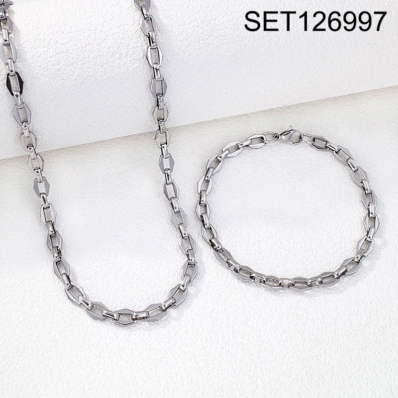 Level B Stainless Steel New Trendy Man Jewelry Steel color Chain SET