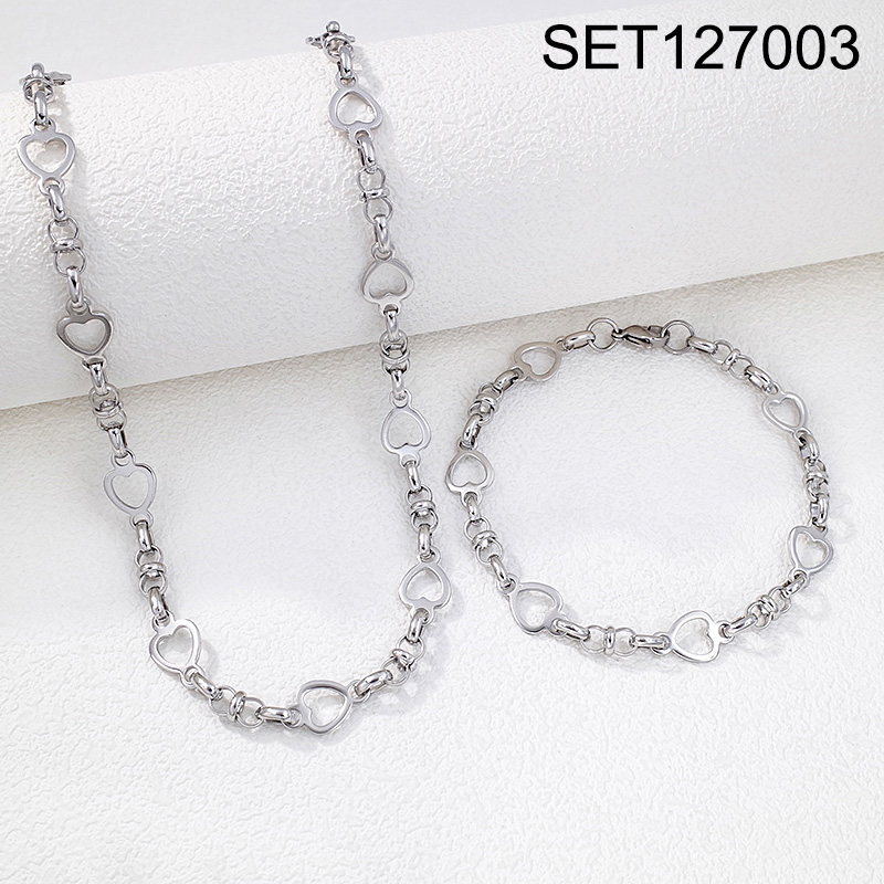 Home > Level B Stainless Steel New Trendy Man Jewelry Heart Steel color Valentine's Day Chain SET