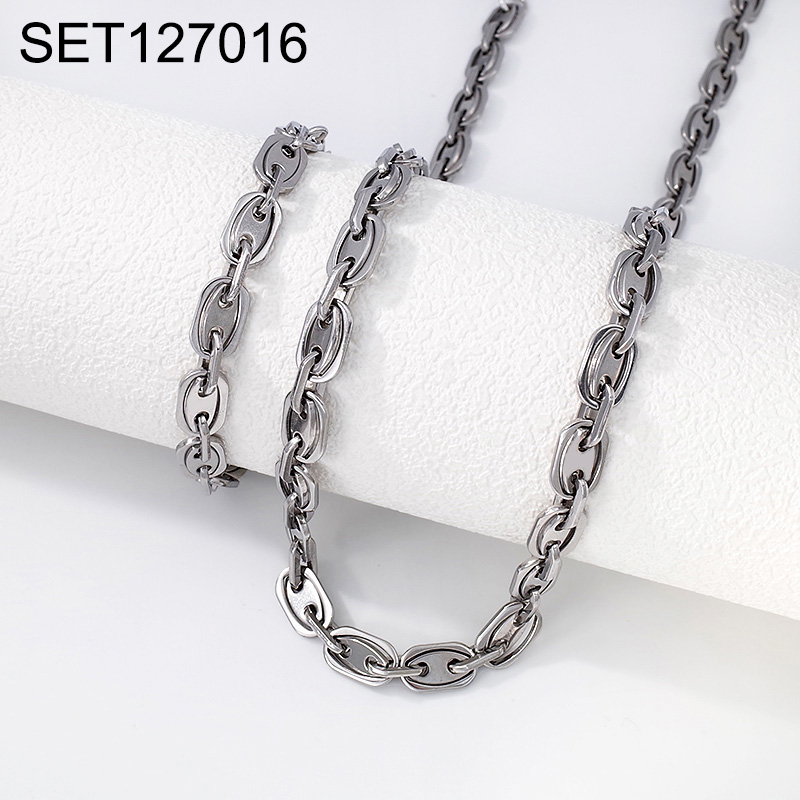 Level B Stainless Steel New Trendy Man Jewelry Steel color Chain SET