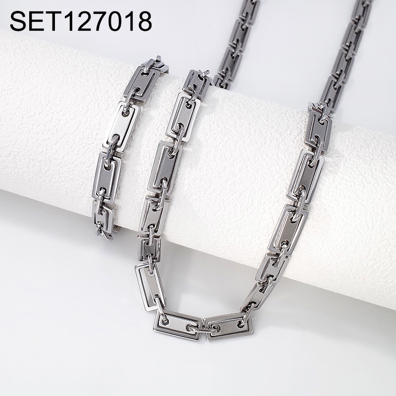 Home > Level B Stainless Steel New Trendy Man Jewelry Steel color Chain SET