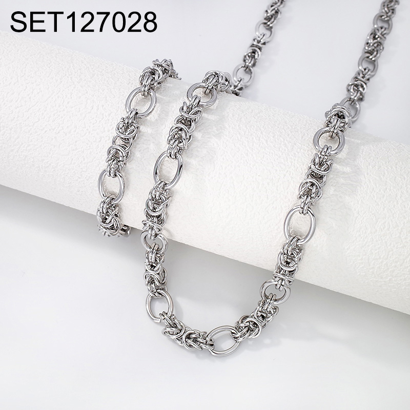 Home > Level B Stainless Steel New Trendy Man Jewelry Steel color Chain SET