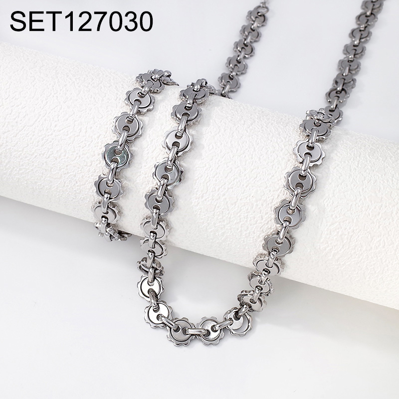 Home > Level B Stainless Steel New Trendy Man Jewelry Steel color Chain SET