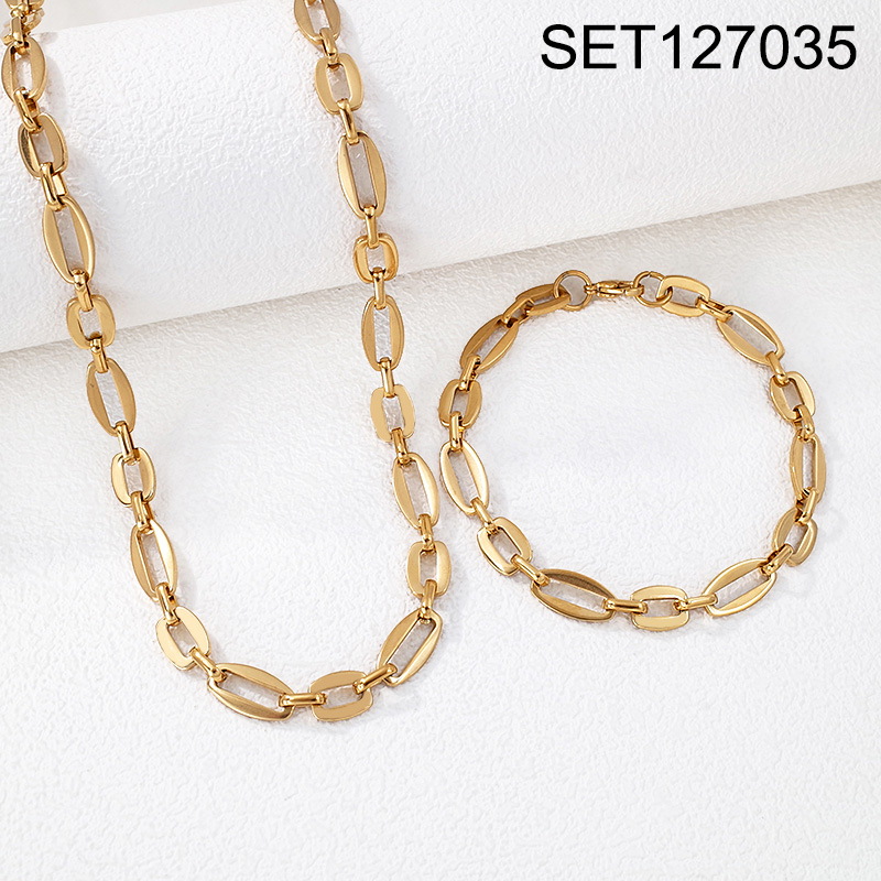 Level B Stainless Steel New Trendy Man Jewelry Golden Chain SET