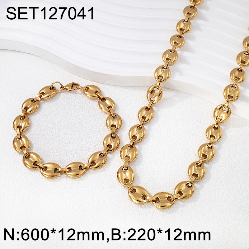Level B Stainless Steel New Trendy Man Jewelry Pig nose Coffee Beans Golden Thick Chain SET