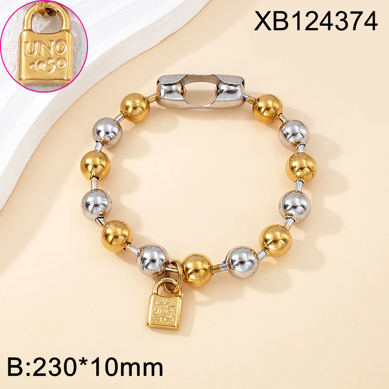 Level B Stainless Steel New Trendy Women Jewelry Lock Two Tone Valentine's Day Thick Chain Bracelet