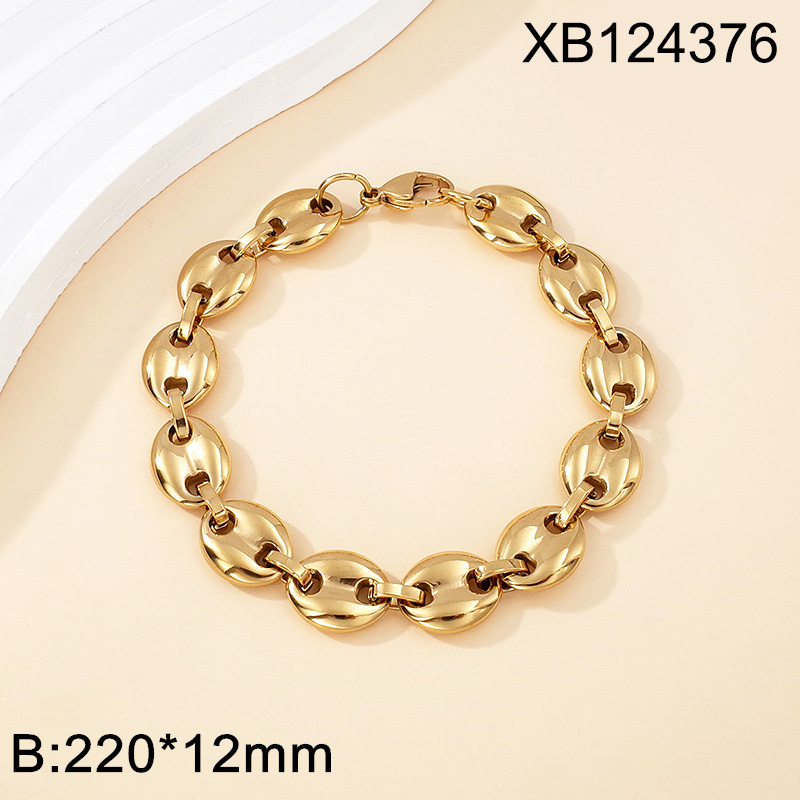 Level B Stainless Steel New Trendy Man Jewelry Pig nose Coffee Beans Golden Thick Chain Bracelet