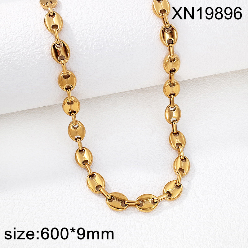 Level B Stainless Steel New Trendy Man Jewelry Pig nose Coffee Beans Golden Thick Chain Necklace