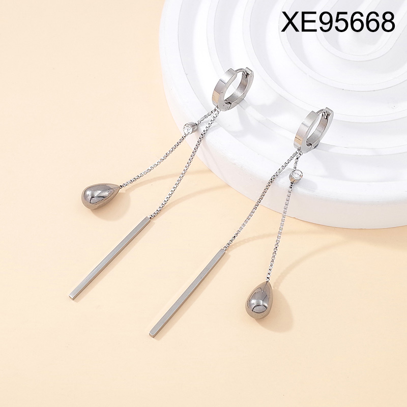 Home > Level B Stainless Steel New Trendy Women Jewelry Water Drip Steel color Hoop Earrings