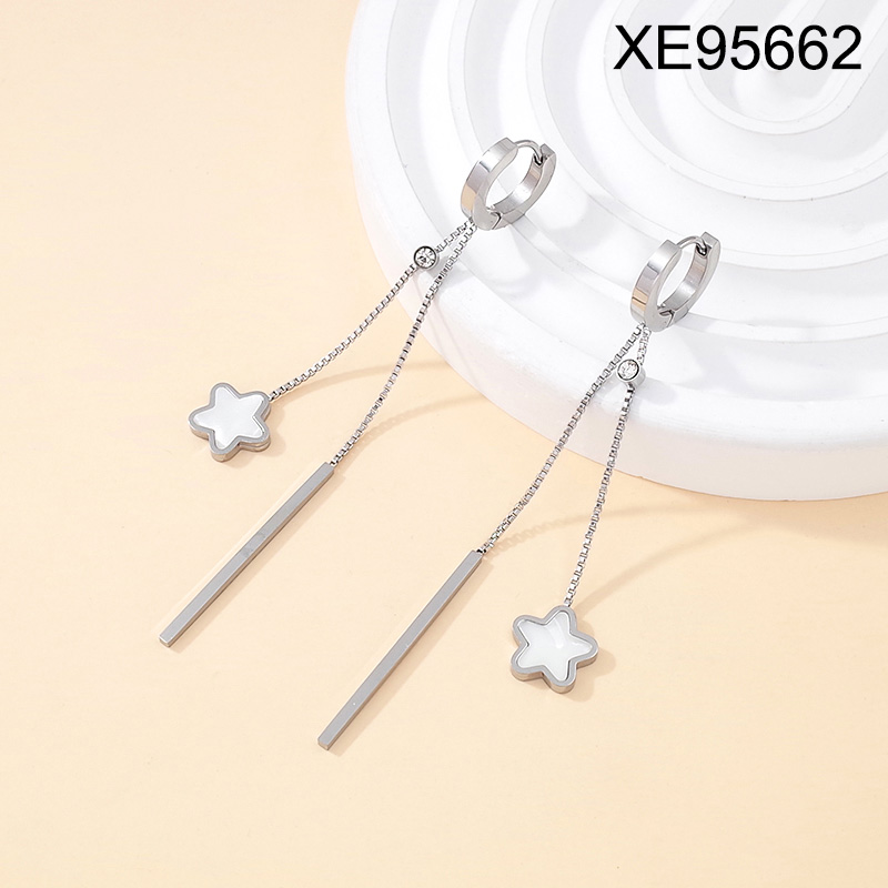 Home > Level B Stainless Steel New Trendy Women Jewelry Star Steel color Hoop Earrings