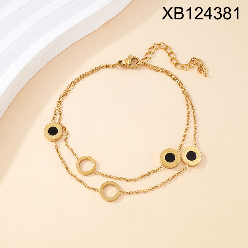 Home > Level B Stainless Steel New Trendy Women Jewelry Two Layers Chain Roman Numeral Golden Bracelet