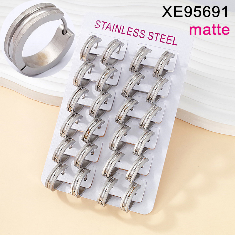 Home > Level B Stainless Steel New Trendy Women Jewelry Steel color Matte Hoop Earrings