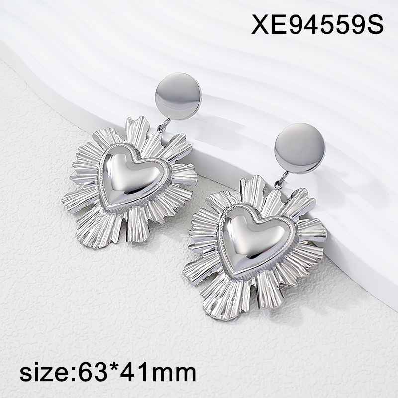 Home > Level A Stainless Steel New Trendy Women Jewelry Heart Steel color Mother's Day Earrings