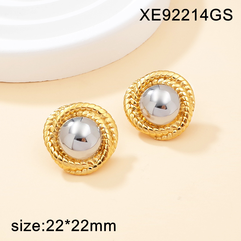 Home > Level A Stainless Steel Jewelry New Trendy Thread Texture Circular Two-tone Earrings