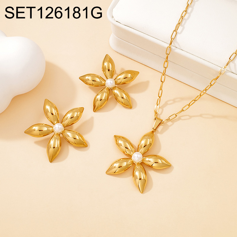 Level A Stainless Steel New Trendy Women Jewelry Pearl Style/Plastic Beads Flower Golden SET