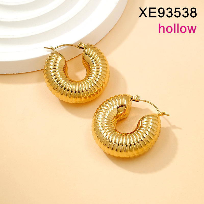 Level B Stainless Steel New Trendy Women Jewelry Hollow Round Golden Earrings