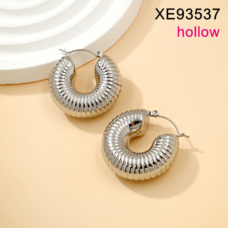 Level B Stainless Steel New Trendy Women Jewelry Hollow Round Steel color Earrings