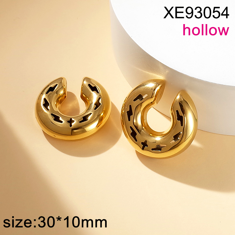 Home > Level B Stainless Steel New Trendy Women Jewelry Polished Hollow ear clip Golden Lightning Without Ear Hole Clip On Earrings