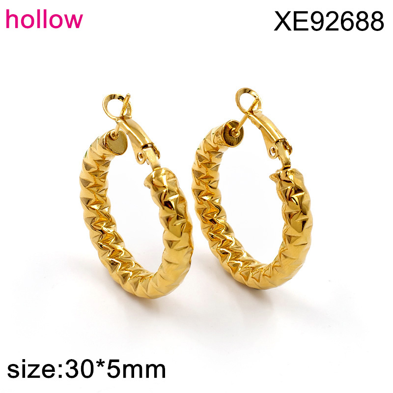Level B Stainless Steel New Trendy Women Jewelry Hollow Round Golden Earrings