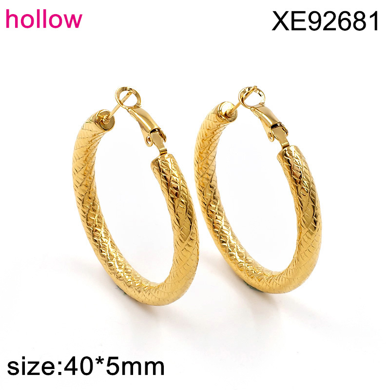 Level B Stainless Steel New Trendy Women Jewelry Hollow Round Golden Earrings