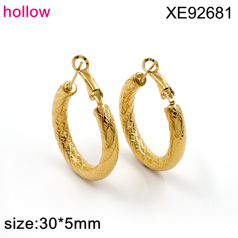 Level B Stainless Steel New Trendy Women Jewelry Hollow Round Golden Earrings