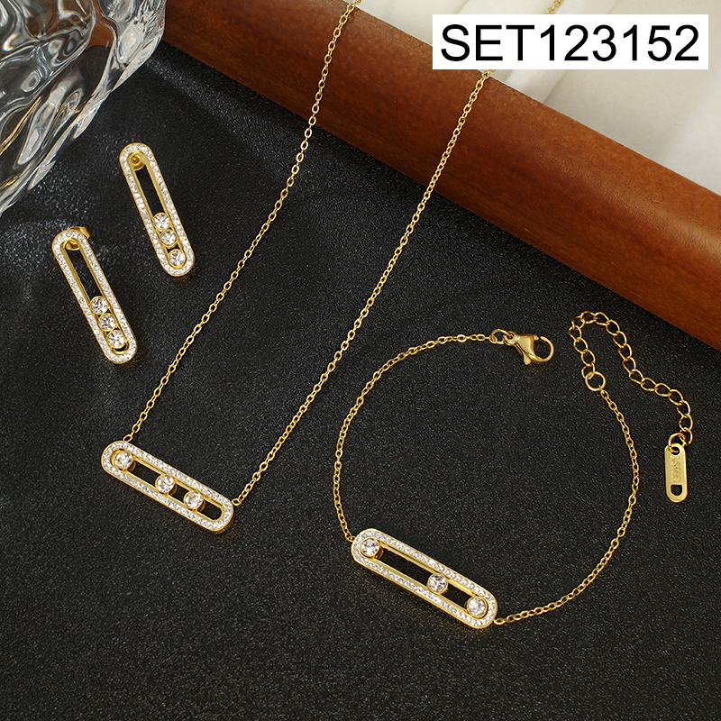 Home > Level B Stainless Steel Jewelry New Trendy Sticky Stone Golden 3pcs SET