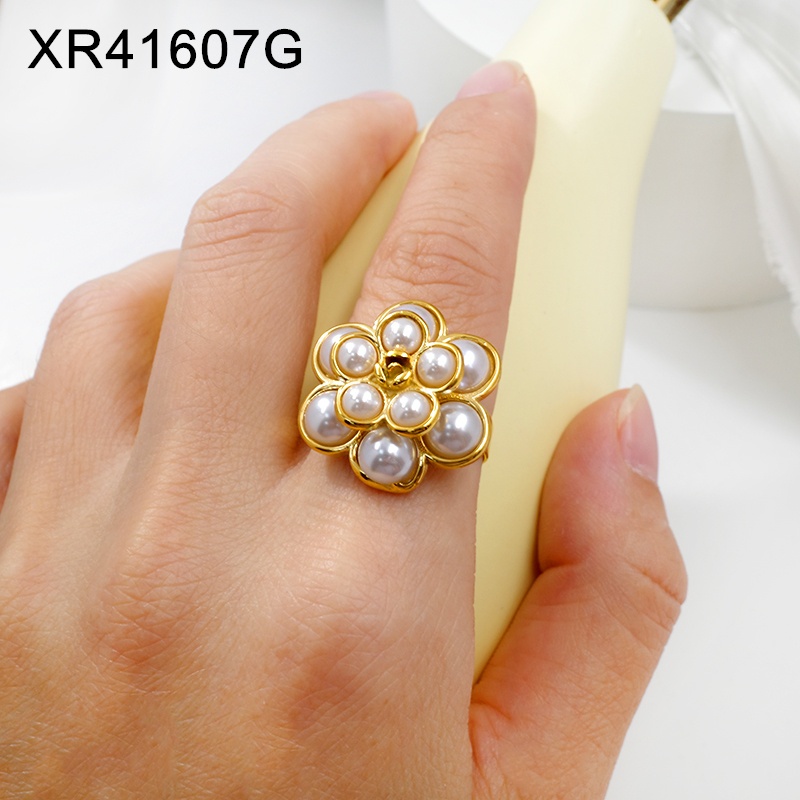 Home > Level A Stainless Steel New Trendy Women Jewelry Pearl Style/Plastic Beads Flower Golden Open Rings;Ring size can be adjusted freely