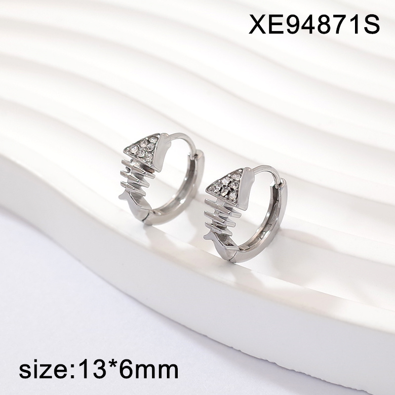 Home > Level A Stainless Steel New Trendy Women Jewelry Summer fruit style Animal Fishbone Steel color Hoop Earrings