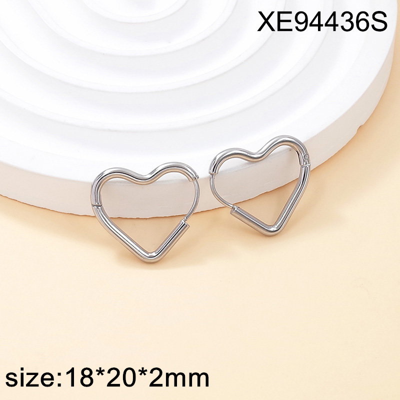 Level A Stainless Steel New Trendy Women Jewelry Heart Steel color Hoop Valentine's Day Earrings