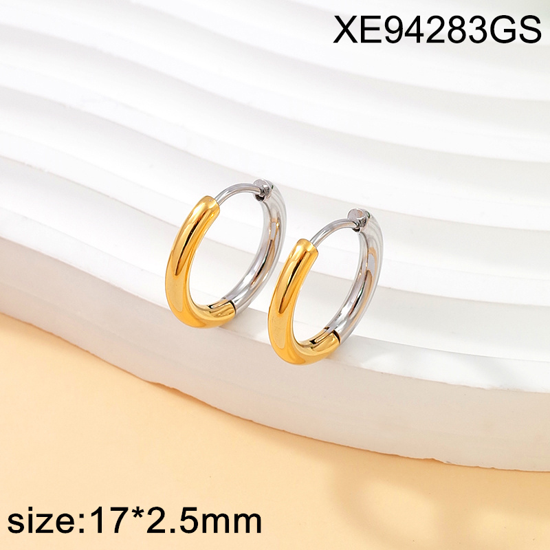 Home > Level A Stainless Steel New Trendy Women Jewelry Two Tone Round Hoop Earrings