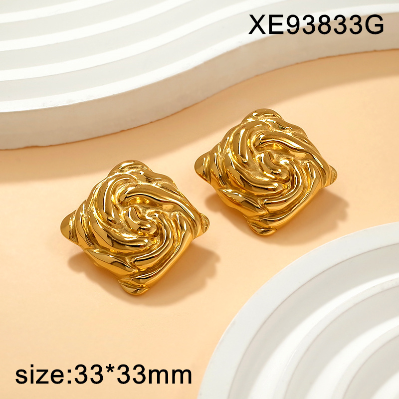 Level A Stainless Steel New Trendy Women Jewelry Rhombus Golden Earrings