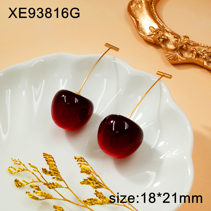 Level A Stainless Steel New Trendy Women Jewelry Summer fruit style Resin Cherry Golden Earrings