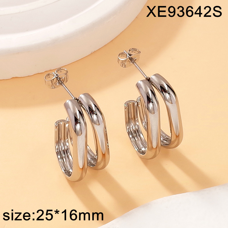 Level A Stainless Steel New Trendy Women Jewelry Steel color C-Shape Style Earrings