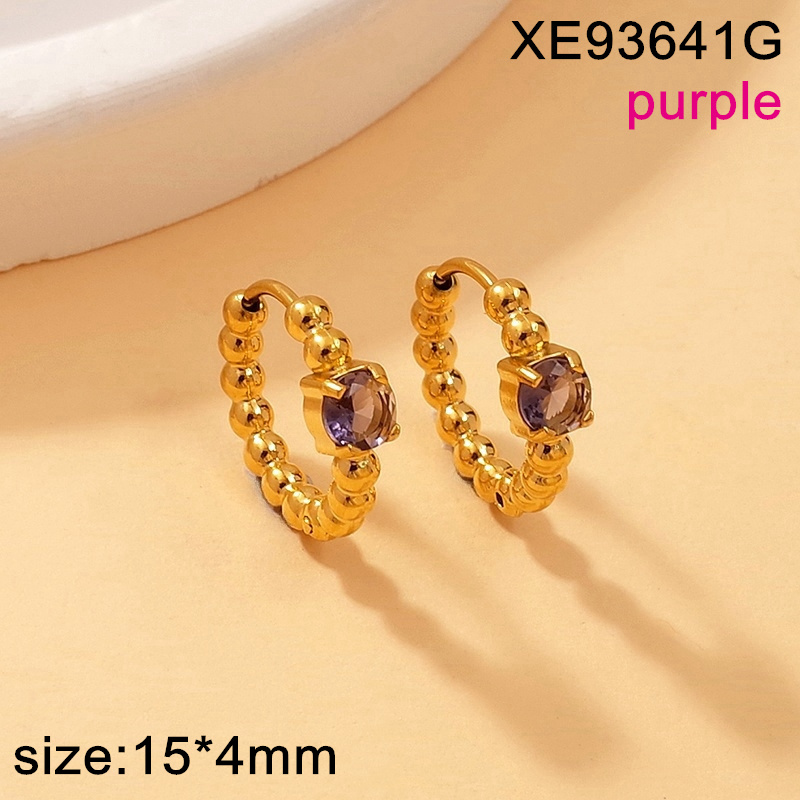 Home > Level A Stainless Steel New Trendy Women Jewelry Round Bead Studded Round Purple Glass Golden Earrings