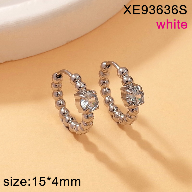 Level A Stainless Steel New Trendy Women Jewelry Round Bead Studded Round White Glass Steel color Earrings