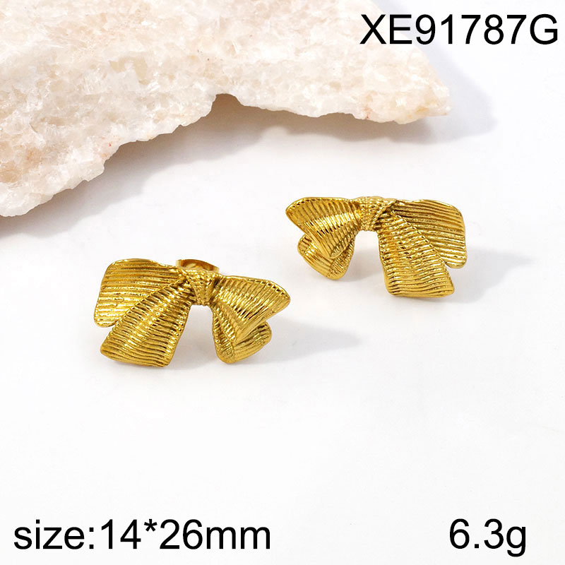 Home > Level A Stainless Steel Jewelry New Trendy Bowknot Golden Earrings