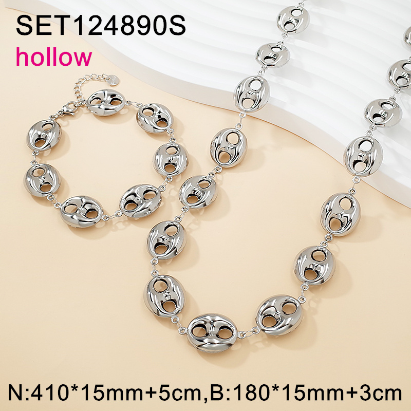 Level A Stainless Steel New Trendy Women Jewelry Pig nose Oval Steel color hollow SET