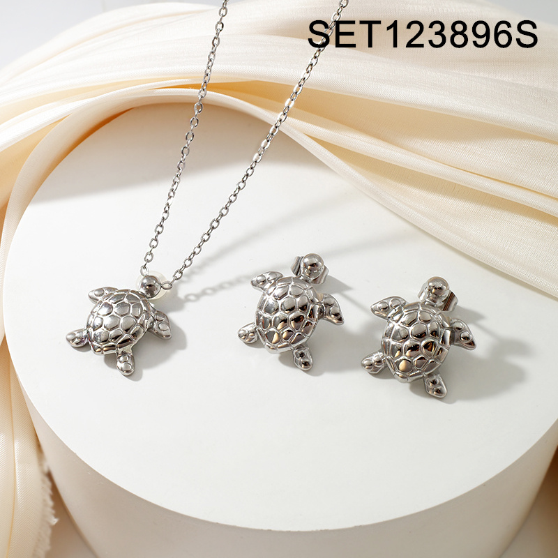 Level A Stainless Steel New Trendy Women Jewelry Summer beach Animal Turtle Steel color SET