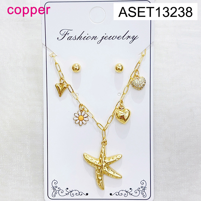 Level B Fashion Jewelry New Trendy Women Jewelry Summer beach Animal Starfish Golden SET;Material:copper (cobre)