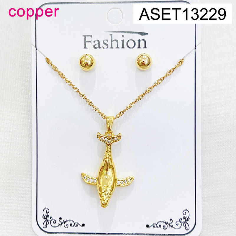 Level B Fashion Jewelry New Trendy Women Jewelry Summer beach Animal Whale Golden SET;Material:copper (cobre)
