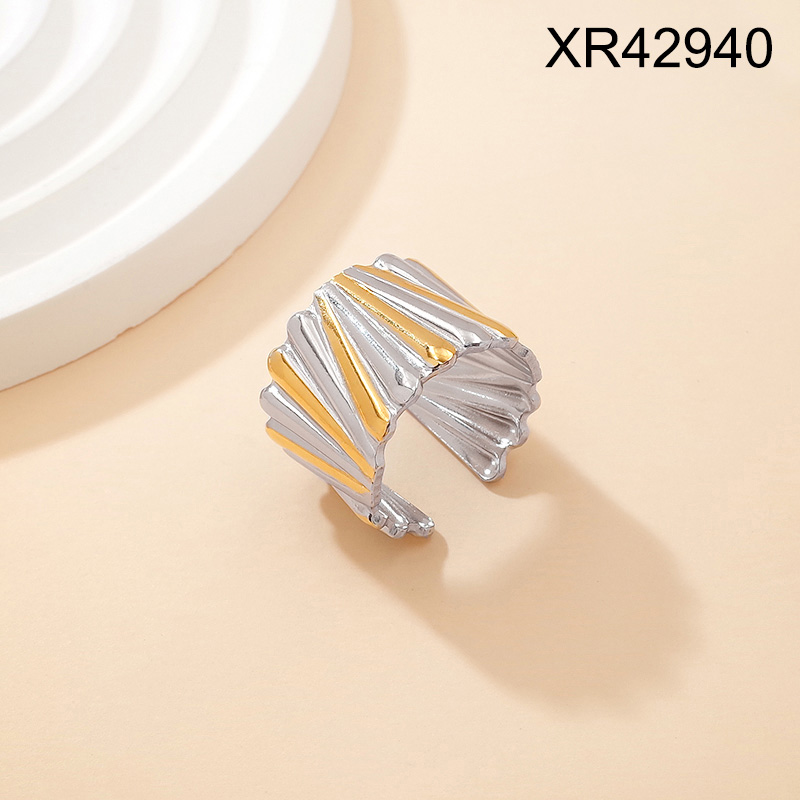 Level B Stainless Steel New Trendy Women Jewelry Two Tone Open Rings;Ring size can be adjusted freely