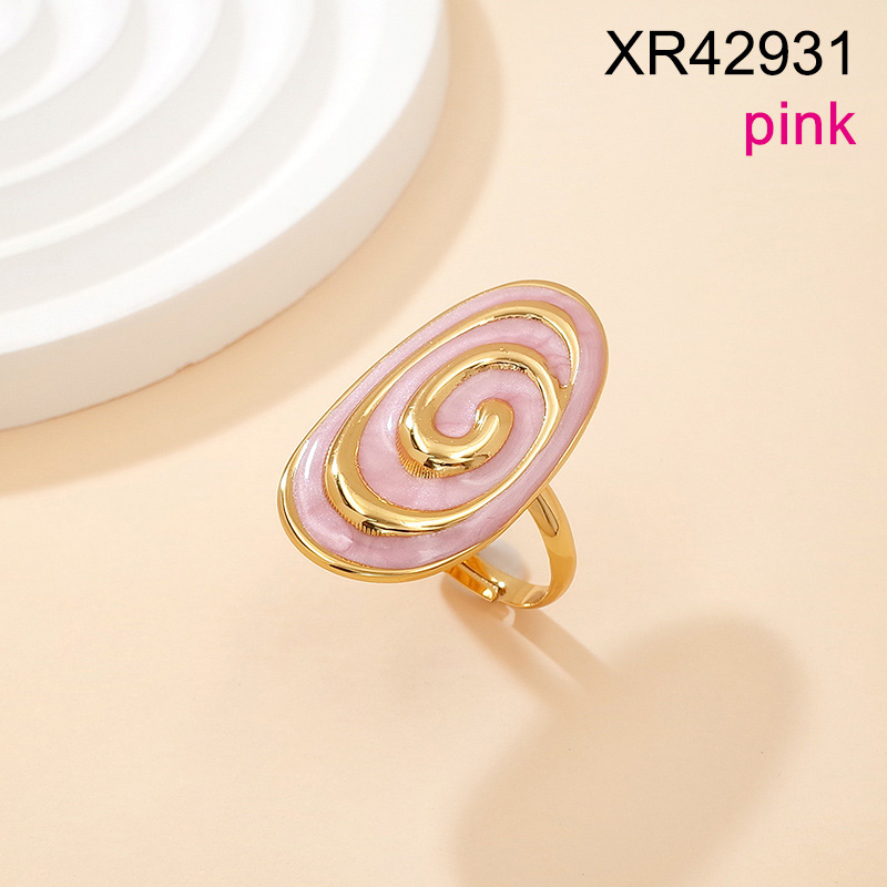 Level B Stainless Steel New Trendy Women Jewelry Drip Oil/Enamel Pink Oval Golden Open Rings;Ring size can be adjusted freely