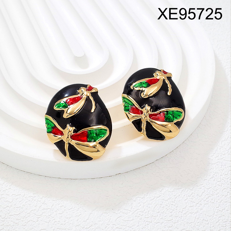 Home > Level B Stainless Steel New Trendy Women Jewelry Drip Oil/Enamel Animal Dragonfly Golden Earrings