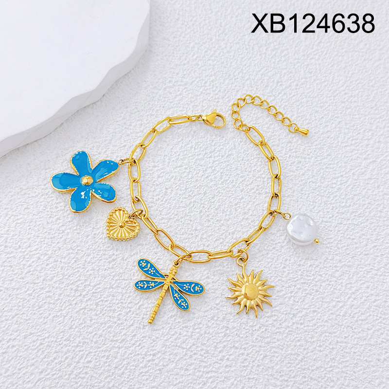 Level B Stainless Steel New Trendy Women Jewelry Animal Dragonfly Heart Sun Flower Golden Bracelet