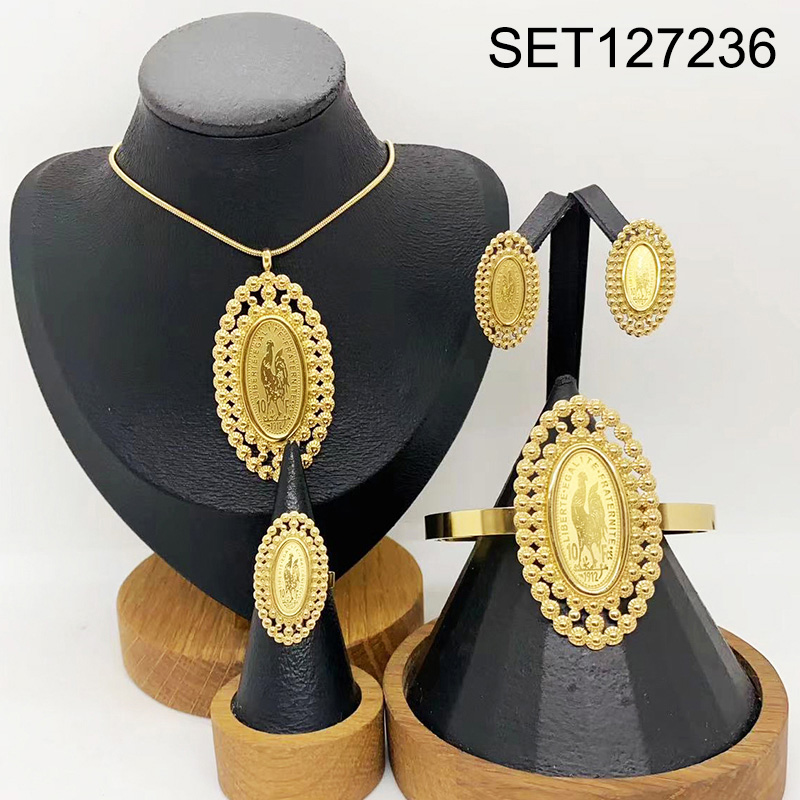 Level B Stainless Steel New Trendy Women Jewelry Animal Chicken Oval Golden 4pcs SET