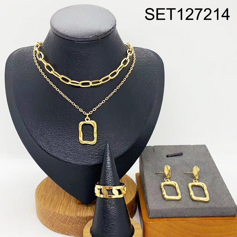 Level B Stainless Steel New Trendy Women Jewelry Two Layers Chain Rectangle Golden 3pcs SET