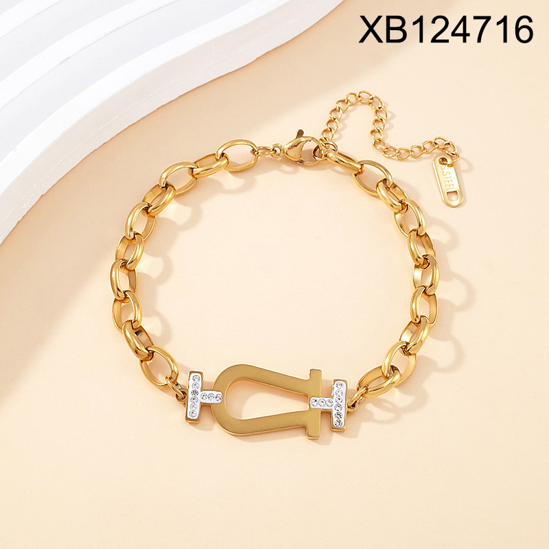 Level C Stainless Steel New Trendy Women Jewelry Horseshoe-shaped Golden Bracelet