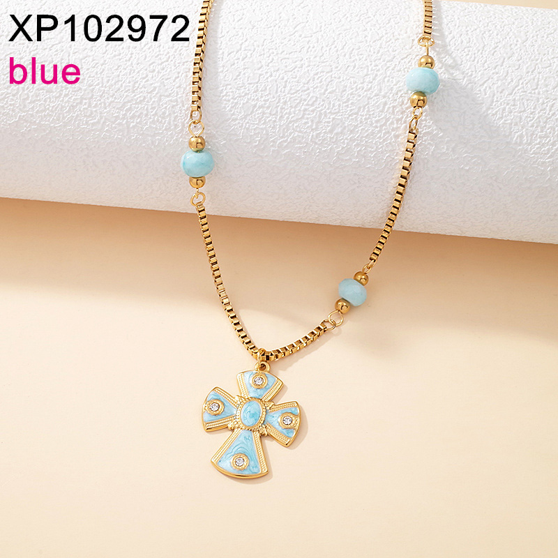 Level B Stainless Steel New Trendy Women Jewelry Drip Oil/Enamel Cross Golden Pendant