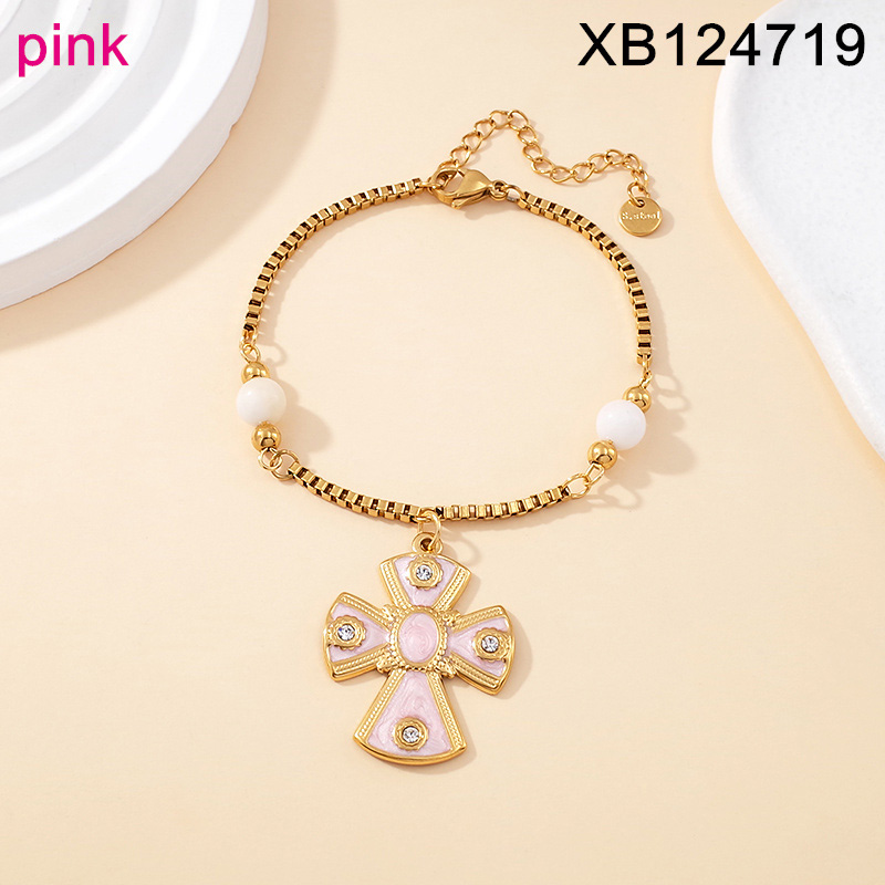 Level B Stainless Steel New Trendy Women Jewelry Drip Oil/Enamel Cross Golden Bracelet